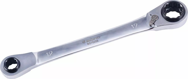 Präzision 72 Zahn-Ratschen-Zahnräder benötigen nur einen 5 ° -Swing-Bogen, um Befestigungselemente in restrizierten Räumen zu bewegen. Speziales Ratschenring-Design ermöglicht vier verschiedene Größen an einem Schraubenschlüssel. Die Sechskantgrößen bedecken die beliebtesten Metrikfehler auf Motorcycles.