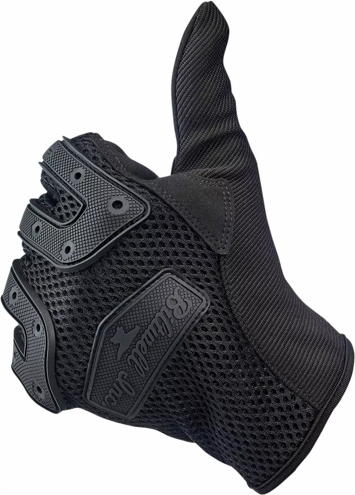 Synthetic Suede Palm Features Two-Way Stretch for a Snug, Comfortable Fit, Three-Ply, One-Piece Vented Polyester Back and Thumb Construction for Maximum Airflow, Flexible Thermoplastic Rubber Knuckle Guards and Shield Logo, Lycra® Expans and double-free polyester stitching, Thermoplastic Rubber Knuckle Guards on the Back of the Glove Provide Protection from Rocky Roost and Airborne Road Debris, A Double-Stitched Das Verstärkungsfeld am Daumen und des Indexfingers fügt Stremtth -Stiche in Fingern und Daumen hinzu, die Sie intelligenten Bildschirmen betreiben