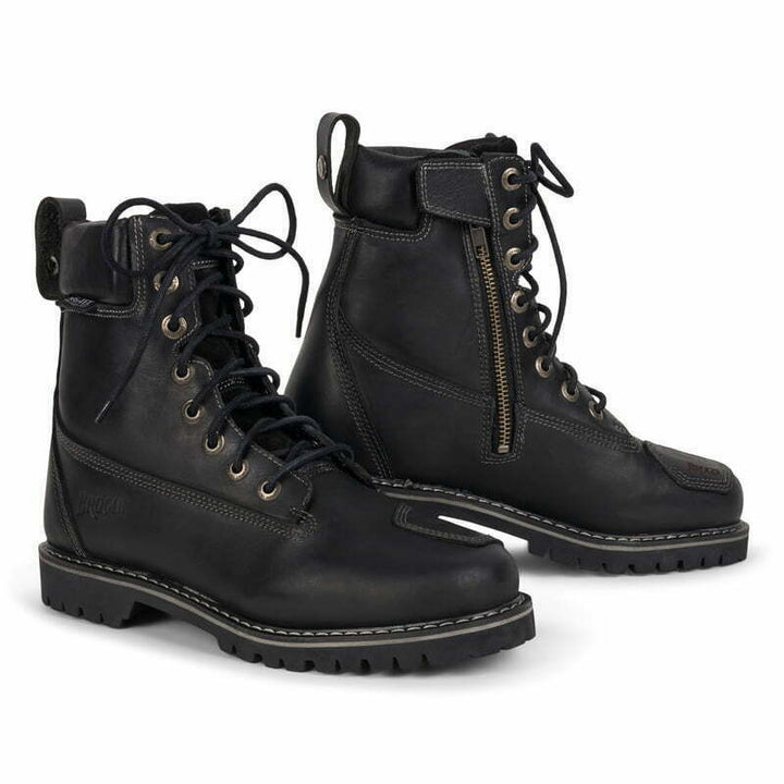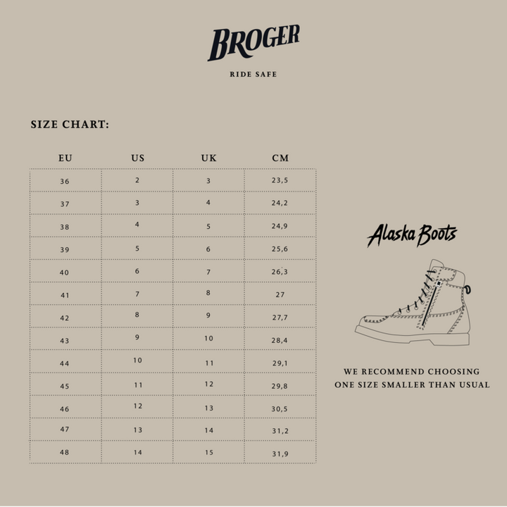Broger Alaska Motorradstiefel kombinieren den Outdoor-Stil der sogenannten "Trappers" mit Verstärkungen für Motorradstiefel. Entwickelt von Motorradfahrern für Motorradfahrer, inspiriert von der Kultur der USA, sind sie perfekt für die Stadt, beim Camping, wo auch immer du willst.