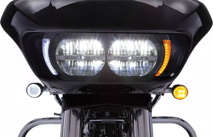 Klares Objektiv mit leuchtend weißen/bernsteinfarbenen LED-Leuchten, ersetzt Dul Factory Plastic-Trimm, das Objektiv ist abnehmbar zu Werksfarben, einfache Bolzen bei der Installation ohne Modifikation, Plug-and-Play-Verdrahtungsadapter, verwenden Sie Power Y-HARTNESS-TEIL Nr. 2120 Multiple beleuchtete Verkleidungszubehör