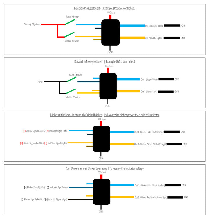Möchten Sie die volle Kontrolle über Ihr elektrisches System - insbesondere wenn Sie verwenden Druckknöpfe oder bauen Sie Ihr Hoch mit moderner Stromregelung wieder auf? Dann HighSider 2-Kanal-Elektronikrelais (208-111) Die perfekte Lösung. Es funktioniert mit beiden 6 V und 14 V Systemund gibt Ihnen die Möglichkeit zu kontrollieren Zwei getrennte Schaltungen - Zum Beispiel Blinker oder andere Funktionen.