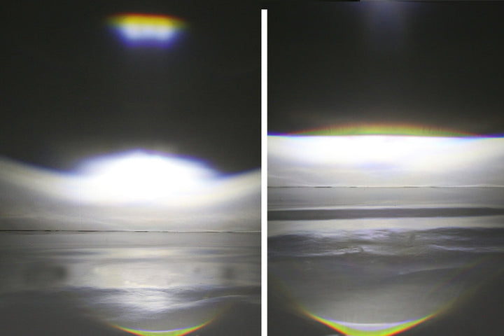 Kompakte und leistungsstarke All-in-One-LED-Scheinwerfer mit runden Objektiven im schwarzen Aluminiumhaus und einer robusten Klammer. Highsider-Dual-Stream beeindruckt mit seiner modernen Technologie- ein beleuchteter Ring um das Objektiv fungiert als Positionslichter und ein eingebauter mechanischer Lukenschalter zwischen vollständigen und getauchten Strahlen.