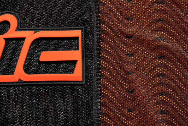 Langlebiger 300D-Polyester- und Eisen-Weave ™ -Mesh-Chassis, 1,2 mm-1,4 mm Tracspec ™ Leder in der primären Absturzzone, einstellbare Taille und Armriemen, ICON® Sport Fit, YKK® Reißverschlüsse, Rückenschutz EN 1621-2 Level 1, EN170-70-2
