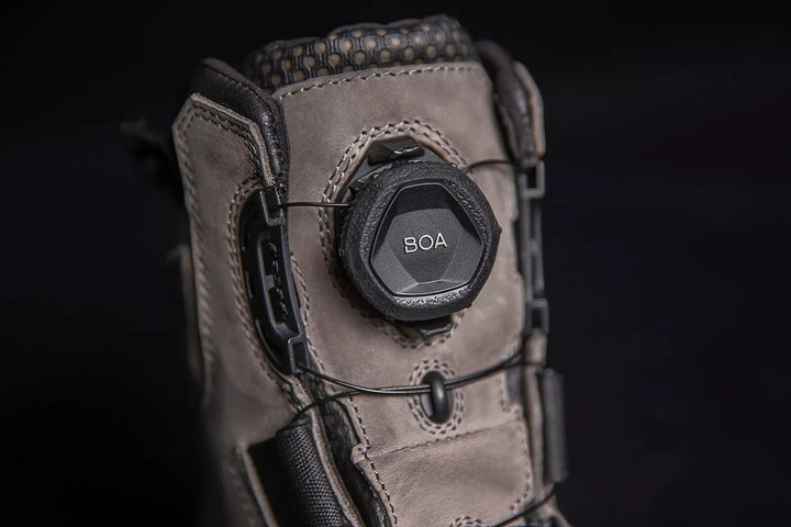 Premium Leder Upper verfügt über eine wasserfeste Finish, atmungsaktives Ereignis, wasserdichte Liner helfen, trockene, hochschledigte Öl/ Schlupf-resistente Gummi-Außensohle trocken zu machen, die motorradische Leistung mit offener Zellpolyurethan-Einlegesübung Füße, BA, bietet. Bequeme Passform, Dual D3O® -Einsätze liefern Knöchelabdeckung, verstärkte Gummi -Zehenkappen, reflektierende Fersenakzente und Schalthebel -Grenzflächen -Nubs