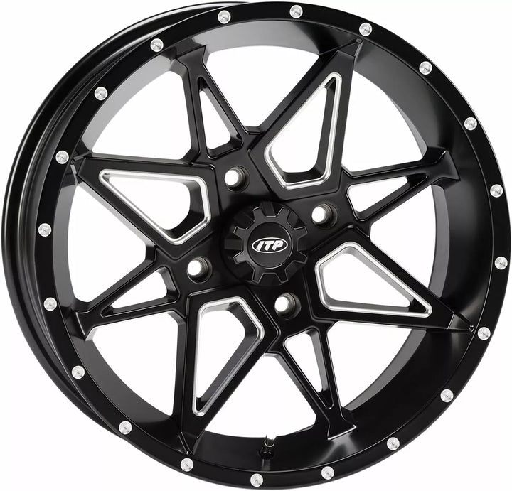 Feature Eight Spoke Center -Konfiguration mit abgeschrägten Kanten sowie unübertroffene strukturelle Integrität für die erqueriale herausfordernde Gelände, ITP Exclusive Rock Armor Inner Wheel Lippe bietet eine unvergleichliche Strukturinvestitions -Aluminium -Legierung, umfasst Center Cap und Ventilstamm, EU -Lastbewertung: 554,31 kg.