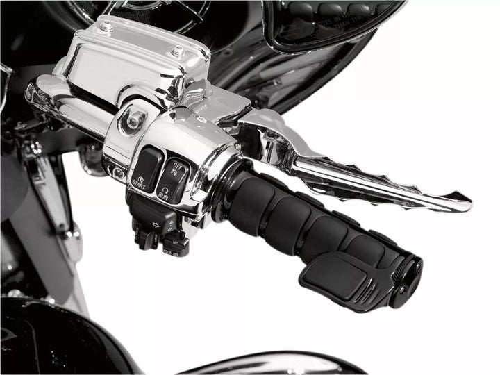 Aktualisiertes Design verfügt über neue Stilakzente und ein größeres Oberflächenblock für einen verbesserten Komfort für die Verwendung mit Küryakyn ISO®-Grips, ISO®-Flame Grip und Transformer Grips