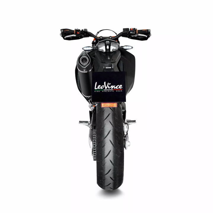 Nero Auspuff-System, aggressive Stil und scharfe Linien. Leovince Nero ist der Schalldämpfer für Motorräder und Maxi-Scooters mit einem dunklen und modernen Look, das Ergebnis von Leovinces ständigem Erforschung von Qualitätsstählen und exklusiven Prozessen. Klarer Beschichtung für UV-Widerstand, schwarzer Farbe auf metallischer Keramikbasis, mattes Finishing, Laser-geätztes Leovince-Logo
