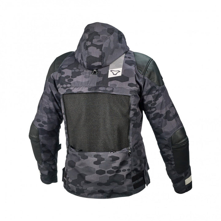 Das Leder an den Ellenbogen und Schultern ist sowohl stilvoll als auch sicher. Robuste SafeTech-Protektoren befinden sich über den Ellenbogen und Schultern, und die Tasche auf dem Rücken macht die Jacke bereit zur Montage eines Rückenschutzes.