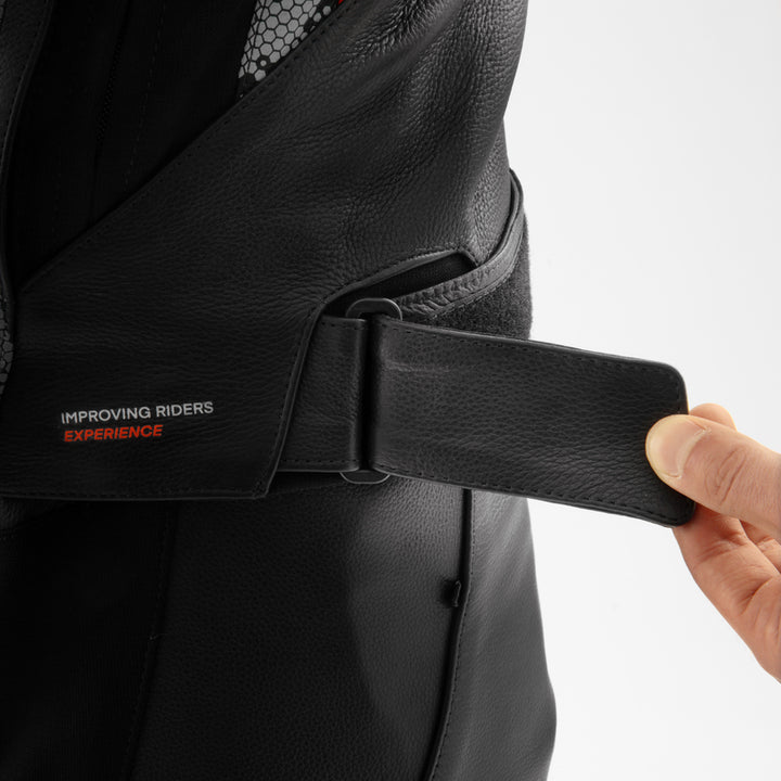 Die Motorradjacke Rebelhorn Veloce bietet dank ihres gut durchdachten Schnitts, des Komforts für den täglichen Gebrauch und für die Touren für diejenigen, die die Sicherheit von Lederkleidung bevorzugen. In Kombination mit der Veloce-Hose erzeugt es ein zweiteiliges Kostüm. Die Verwendung von 4-Wege-Stretch-Einsätzen sorgt für eine optimale Anpassung. Die Jacke hat auch ein fortschrittliches Lüftungssystem.
