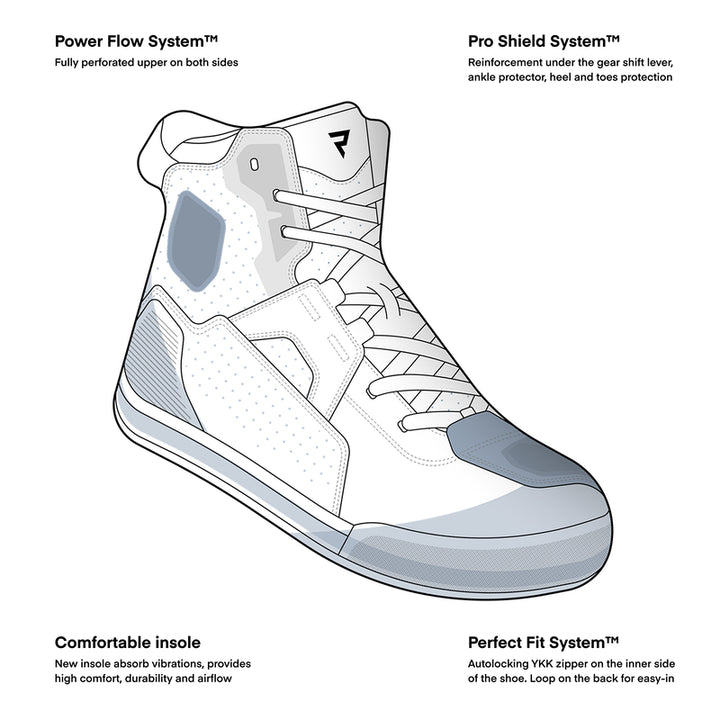 Rebelhorn Vandal II sind die perfekten Motorradschuhe für diejenigen, die einen stilvollen, komfortablen und sicheren Schuh für das tägliche Fahren der Stadt suchen. Mit seinem modernen Design und seiner funktionalen Konstruktion kombinieren diese Turnschuhe sowohl Mode als auch Sicherheit - perfekt für den städtischen Motorradfahrer.