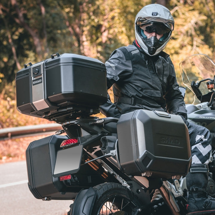 Die Top Case von Terra TR55 Black Edition verfügt über eine Kapazität für zwei Flip-up-Helme und fällt auf, dass es mit 5,4 kg das leichteste Aluminiumgehäuse auf dem Markt ist. Entworfen und 100% in Barcelona hergestellt. Das innovative Design minimiert die visuelle Auswirkungen auf das Motorrad. Die Version der Terra Black Edition ist mit kratzfestem Matt Black Paint fertiggestellt. Das Top -Fall von Terra TR55 wurde dank seines Designs mit den ABC Awards vergeben, die sich auf die Lösung wichtiger Aspekte für die Verwendung von Adventure -Motorrädern konzentrieren. Es verfügt über eine aerodynamische, integrierte Struktur aus einer gehärteten Aluminiumlegierung, ein stärkeres und Licht des Aluminiums, das einen reduzierten Querschnitt von 1,2 mm zur Hindernis für das Mindestgewicht mit maximalem Widerstand verabreicht. Wie bei allen Fällen von Terra -Aluminium ist das 'Terra -Deckelsystem' (anstehendes Patent) enthalten. Mit einer AISI 304 Industrial Grade Edelstahlstruktur, die das Schließsystem und einen einziehbaren Tragegriff umfasst. Diese Struktur wurde für die schnelle, Einhandnutzung ausgelegt und ermöglicht es dem Benutzer, den Fall innerhalb von Sekunden zu öffnen, zu schließen, zu entfernen und zu transportieren. AISI 304 Edelstahlscharniere sind ebenfalls erhältlich. Der gummiversiegelte Rahmen des Gehäuses schützt den Innenraum vor ungünstigen Wetterbedingungen (Wasserbeständigkeit). Zusätzlich reduziert die innere Schaumstoffbasis die Bewegung der Last im Inneren. Die Schlüssel- und Schleuderzylinder des TR55 sind die Premium -Version von Shad, mit einem System, das die Wahrscheinlichkeit eines Diebstahls verringert, sowie eine Abdeckung, die den Eingeben von Staub verhindert. Dank seiner externen AISI 304 Edelstahlhaken ist die Möglichkeit, zusätzliche Last hinzuzufügen. Die Installation eines Schatten -Top -Meisters und einer Montageplatte (nicht enthalten) ist erforderlich. Es gibt drei Optionen zur Montageplatte: Shad Standard Plate (D1B591PA), Aluminium -Montageplatte (D1BTRPA) oder die schwarze Aluminiummontageplatte (D1BTRPA2). Die Schleuderzylinder können leicht geändert werden: Oben und Seitenkoffer können für die Verwendung mit einem Schlüssel in weniger als 5 Minuten einheitlich sein. Ein dritter Zylinder ist für den oberen Fall im rechten Fall enthalten. Zubehör (nicht inbegriffen): Zweiteiler der Rückenlehne (D0RI75) und erweiterbarer Innenbeutel (x0iB10).