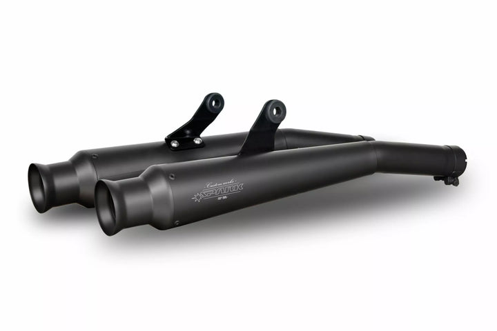 Trompete Universal Slip-On-Schalldämpfer mit Vintage-Stil, aber neueste Technologie ist an jede Art von Motorrad angepasst. Das Logo wird auf beiden Seiten so lasiert, so dass der Schalldämpfer in einzelnen oder mehreren Lösungen auf beiden Seiten des Motorrads montiert werden kann. Es ist möglich, den Schalldämpfer durch Hinzufügen eines bestimmten Logos oder einer Markierung anzupassen.