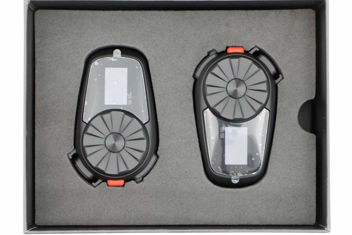 Spät 5S-10D Dual Ist eine komplette Bluetooth-Gegensprechanlage für zwei Treiber-eine perfekte Wahl für diejenigen, die paarweise einen kristallklaren Klang, einfache Installation und intelligente Funktionalität direkt im Helm wünschen. Auf der Erbschaft von Classic SMH5 basiert, wurde jedoch mit Bluetooth 5.0, HD Sound, LCD-Display und neu entwickelten HD-Lautsprechern verbessert.
