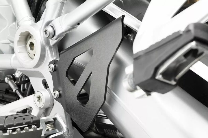 Der gefaltete und lasergeschnittene Aluminiumschutz schützt den Fußbremsenzylinder vor unerwünschten Kofferraum, verhindert den Kontakt zwischen Stiefeln und Bremspumpe, bietet zusätzlichen Schutz während im Gelände angetriebenes Material