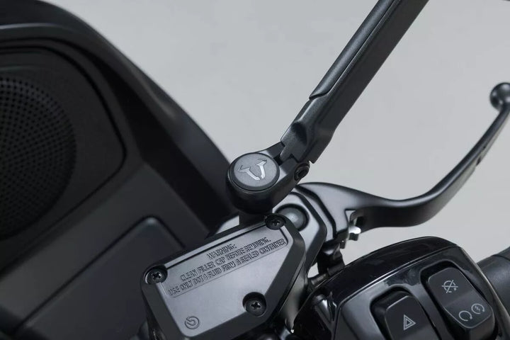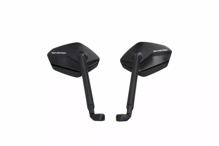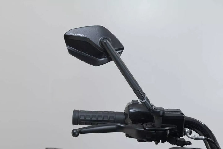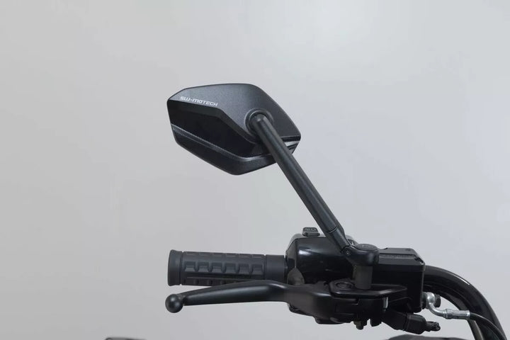 SW-Motech stellt die einstellbaren Spiegel in einem modernen und flachen Design aus hochwertigen geschmiedeten und schwarzen anodierten Aluminium her. Die Spiegelarme bestehen aus kontinuierlich einstellbaren Elementen und können jeweils um 30 Millimeter verlängert werden. Auf diese Weise können die Höhe und Länge der Spiegel an die Anforderungen des jeweiligen Piloten angepasst werden. Dieses Sportspiegel -Set hat einen kurzen Spiegelarm. Spiegelarmlänge: 152 mm., Modernes und flaches Kantendesign, Teilbereiche und funktionelle Oberflächen gemahlen., 4 verschiedene Einstellungsunternehmen für die bestmögliche Ausrichtung. Montage auf der vorhandenen Spiegelverbindung.