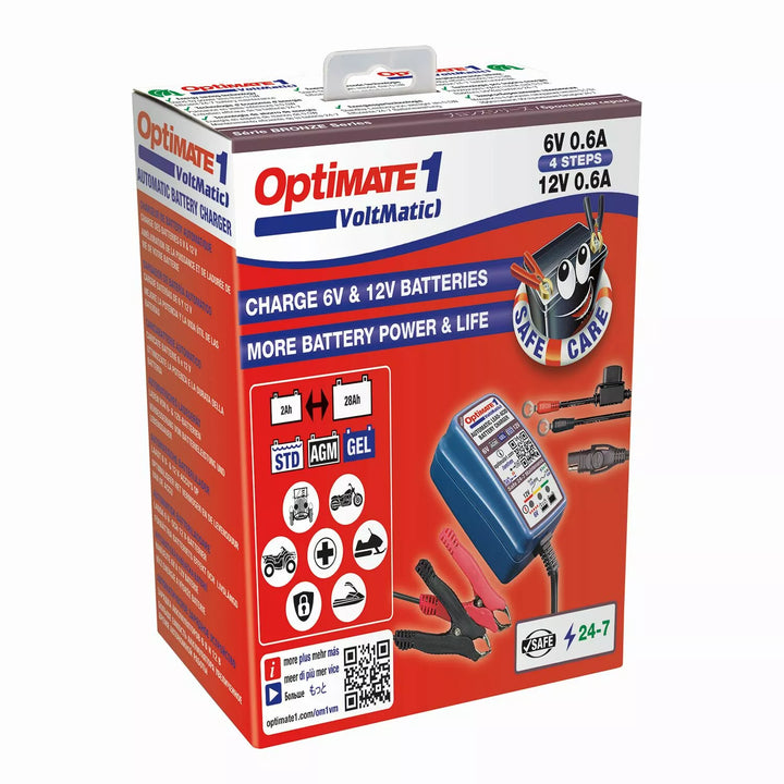 Optimieren Sie 1 Voltmatische Bronzeserie: 4-Stufen 6 V / 12 V 0,6 A Batterie-Ladegerät und -Tevertreter. Gel)., Liefert 0,6 Ampere Ladungsstrom, die für die Wartung kleinerer Batterien empfohlen werden. Er liefert eine langfristige Wartung. Schließen Sie die Batterie und die OPTime 1 Voltmatic an, die rest, keine Überwachung erforderlich., Voltmatic: 6V- oder 12 -V -Ladungsmodusauswahl gemäß Batteriespannung. Green Technology., Energiespartechnologie -Stang -bis 0,5 W -effiziente 24-7 Batteriewartung.