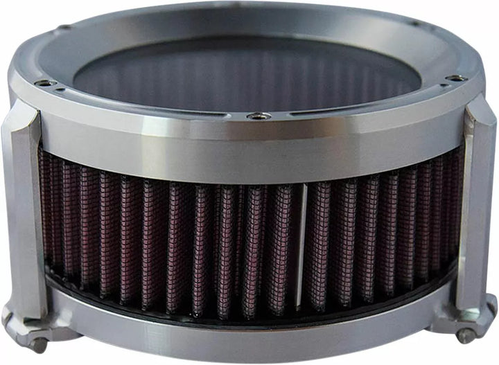 Verfügt über eine Billet-Aluminium-Unterstützungsplatte mit verstecktem integriertem Entlüftungssystem und eine Außenabdeckung von Plexiglas, ein Schnappgeschwindigkeits-Stapel für einen verbesserten Luftstrom, ein Dyno-entwickelter und getesteter Luftfilter mit hohem Fluss ist wiederverwendbar. Einfach reinigen und wieder iilieren, in den USA hergestellt