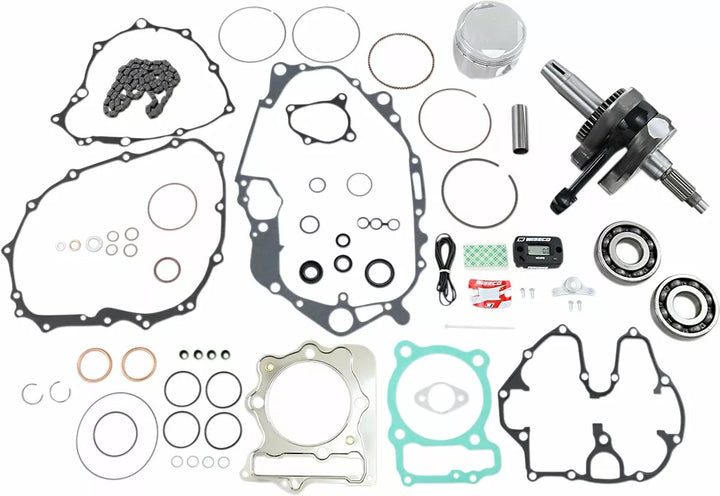Das Kit enthält ein Premium-Schmiedenkolben-Kit mit Lagerkomprimierungsverhältnis und eine qualitativ hochwertige Nockenkette, obere und untere Endkomponenten sind für einen vollständigen Motorumbau enthalten, Kurbelwellen- und Stangenbaugruppe, die in Asset-Bracket entworfen und inspiziert wurden, sind auch im Kit enthalten