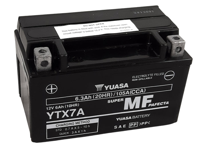YUASA YTX7A-FA ist ein hochleistungs AGM-Batterie, werkseitig aktiviert und sofort einsatzbereit. Es ist perfekt für Motorräder, Roller, Quads und andere Fahrzeuge, die zuverlässige Startkraft, lange Lebensdauer und minimalen Wartungsaufwand erfordern.