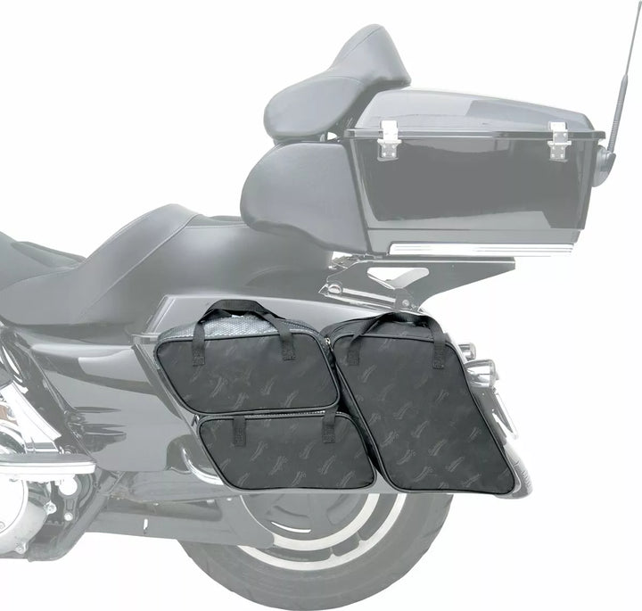 Ideal für Reisen, Übernachtungen und Organisation Ihrer Werkzeuge oder Reinigungsmittel. Heben Sie Ihre Liner einfach aus den Satteltaschen, um Ihre Ladung leicht in das Hotel zu bewegen, den Campingplatz zu entfernen oder schnell zu entladen, sobald Sie aus Licht zu Hause sind, aber dauerhafte PVC-ausgeräumte 150-Denier-Polyester mit robusten Reißverschlüssen.