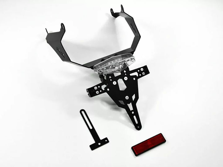Der Nummernschild ist extrem langlebig und wettersicher. Schwarzpulverbeschichtet. Der Nummernschildinhaber kann für jede Art von Nummernschild (175 mm Breite) verwendet werden. Es ist keine Änderung der Verkleidung erforderlich. Schrittlose Einstellung des Rechenwinkels. Teller. Montage Kit., LED -Nummernschild "E zugelassen" inkl. Unterstützung., Rückenlicht mit Unterstützung.