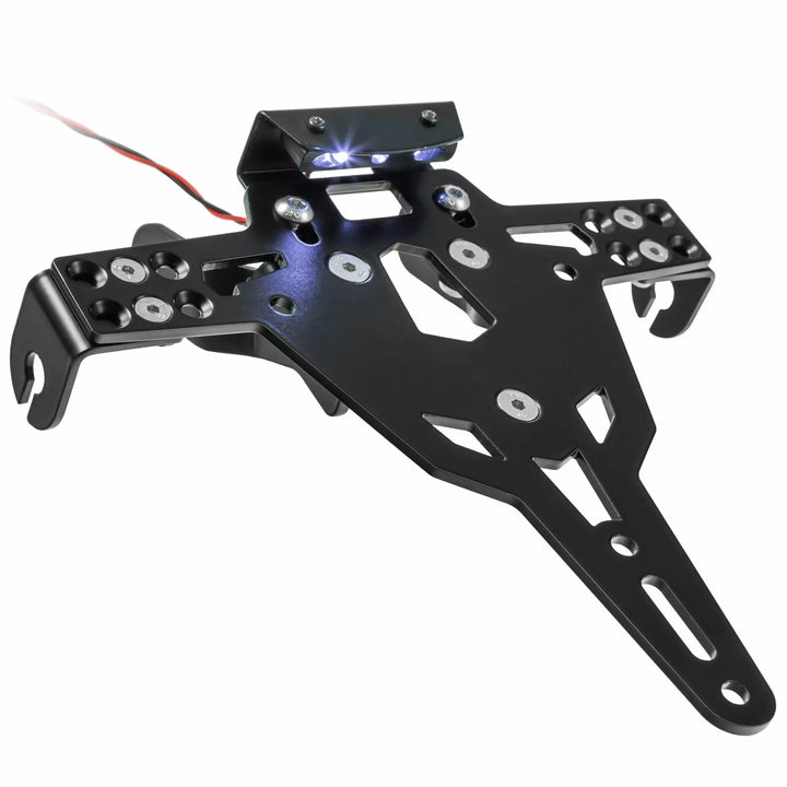 Der Nummernschild ist extrem langlebig und wettersicher. Schwarzpulverbeschichtet. Der Nummernschildinhaber kann für jede Art von Nummernschild (175 mm Breite) verwendet werden. Es ist keine Änderung der Verkleidung erforderlich. Schrittlose Einstellung des Rechenwinkels. Teller. Montage Kit., LED -Nummernschild "E zugelassen" inkl. Unterstützung., Rückenlicht mit Unterstützung.