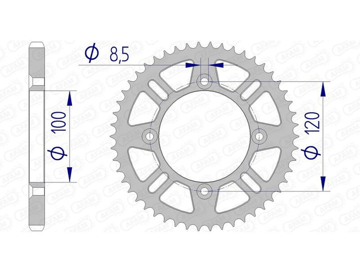 AFAM ALU REAR PROCESS PRODDED WITH AN ALLOY WHICE COMBINES Lightweight and Resistance. The High-Quality Manufacturing Process and the Cutting Precision Made AFAM A World Leader for Motorcycle Transmission Parts. Aluminum Ultra-Light Rear Procetaluminum 7075 T6TOP of Range Manufacturing and Quality LIGHTER THAN Steel Chain_pitch: 428.0 Material: Aluminum rear_prolet_teeth_count: 52.0 REAR_PROKET_PETTER: 15104