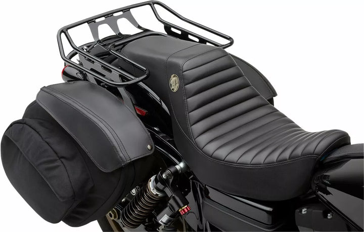 Top of the rack is about level with Top of Seat and Each Rack Has a kick up in the rear, there are places to attach bungee cords or mounting straps so you no longer have to scratch your bike fen s fender as you secure your cargo, mounting hardware alta. Harley-Davidson Mounting Kit., If Aftermarket Seat is not Saddlemen or Lucky Daves Step Ups, then Look Carenly at the Measurements of the Opening to Ensure the Rack Will Fit Around Your Bike メ S Seat.