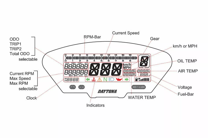 Waterproof (IP67), Stainless-Steel Bracket Included, Black ABS Housing, Speedomets, MPH (0-250 MPH) & KM/H (0-399km/H) Selectable, Odometer, Clock, Low Battery Warning, E-Marked