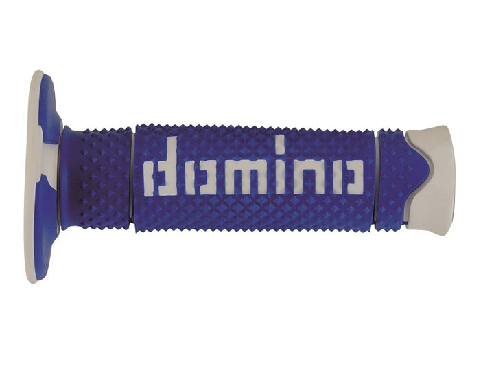 Domino Full Grips Offer The Rider A Good Feel and Excellent Grip, Thanks to the Distinctiveness of the Rubber and Spikes. Spikes Cover All the Handle "Soft" Rubber: Better Feel for the Rider Optimizes Feeling On The Handlebar Length: 120mmmad from TPE Numerous Colors Availablesold in Pairsend Close Color: Blue & White Grip_comund: Single Compoly: Non: Non: Non: Non: No