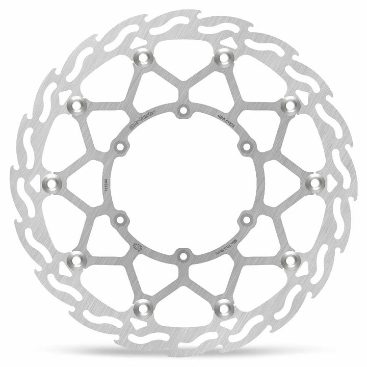 , Designed for Use With Stock Brake Calipers, Supermoto Street Discs Are 4 mm Thick and Utilize A 320 mm Floating Design, Like The Flame Design Outer Ring, The Inner Carrier Is In Premium Quality Stainless Steel, Mounted With 10 Stainless Steel Floaters