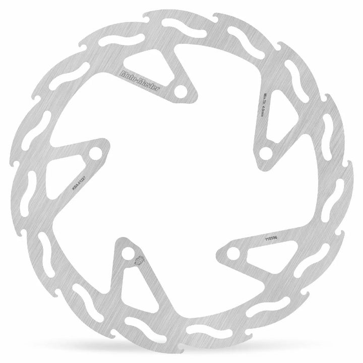 Flame Shaped Valenting Slots And Outer Perimeter Ensure An Equal Amount of Contact Surface Between The Brake Pad and Disc Throughout The Who Rotation of the Disc., Smooth and More Predictable BRAKING ACTION WHICH ALLOWS YOU TO BRAKE HARDER. Double-grinded for Perfect Fitment and Flatness, for Best Performance We Recommend Using Moto-Master Brake Pads with the Matching Pad Compound That Best Suits Your Type of Riding.