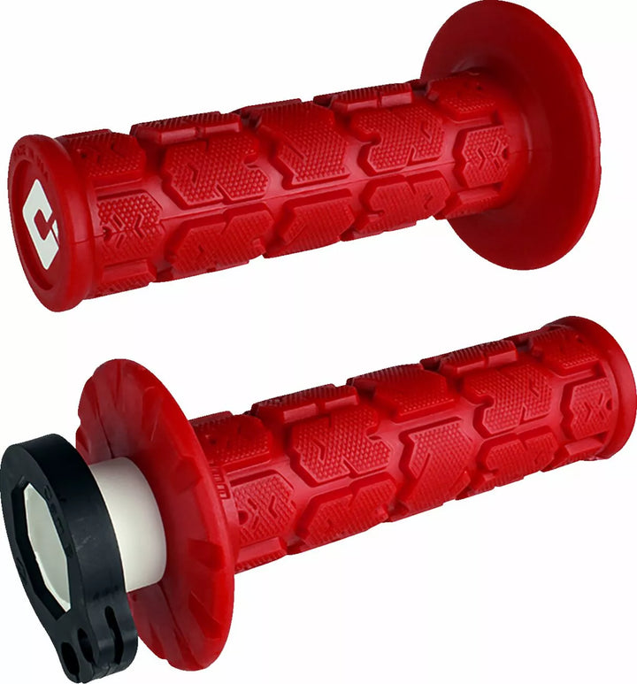 ODI has revenked its popular lock-on mx grip to make it even better, the lock-on grip systems you to change or replace grips in seconds without the need for any wire ties or glues, delivers Slip-free performance under any condition Included with Snap-on Throttle Cam to Match Most Modern Motocross Bikes, Knockout Ends Easily Accommodate Hand Guards, Compatible With V2 Throttle Cams for Additional Fitment Options