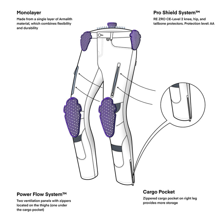- CE-Level 2 Approved Re Zro® protection at knees and hips