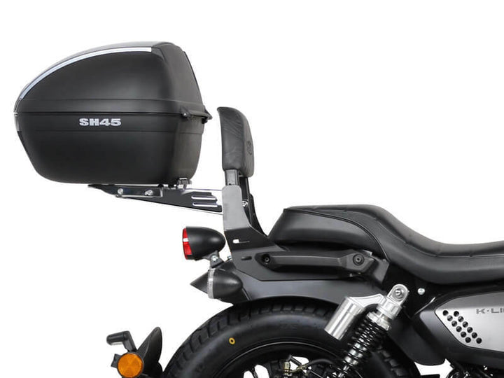 To fit a top box on a custom model, you need to fit the appropriate backrest depending on the motorcycle model and the universal custom parcel holder, Ref.: NADTN.