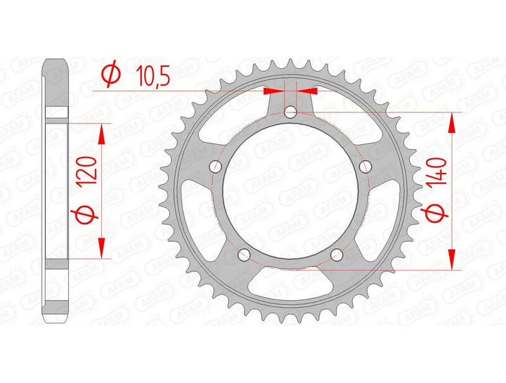 AFAM Steel arrière Pro est usiné à partir de l'acier C45, puis traités avec une dureté plus élevée et même une résistance. Le processus de fabrication de haute qualité et la précision de coupe ont fait de l'AFAM un leader mondial des pièces de transmission de moto. SPROCHetTop arrière en acier de la fabrication de la gamme et des contributions de qualité à la durabilité du kit de transmission Chain_pitch: 530.0 Matériau: acier arrière_prolet_teeth_count: 46.0 arrière_proet_type: