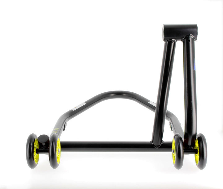 BIHR Home Track New Paddock Stands est développé en partenariat avec Indepro, fabricant espagnol. Tubes de support dans Ø 35 mm Steel4 Ø 110 mm rouesmat noir peinture en poudre à effets de peinture de piqûres, les broches sont à commander une couleur séparément: Black et jaune charge maximale kg: 250,0
