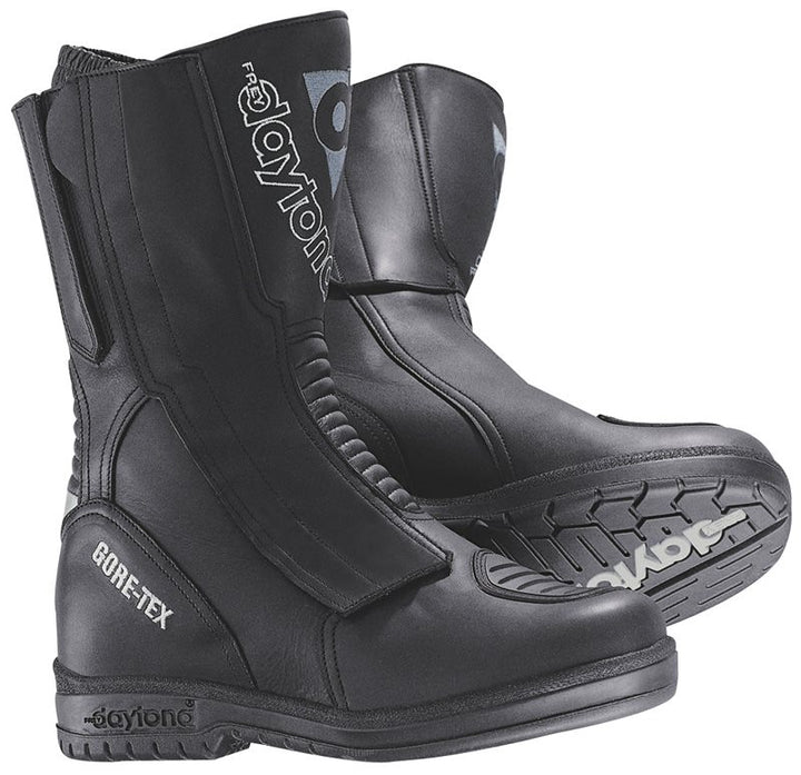 Boot spécial avec une semelle intermédiaire d'environ 6 cm de plus dans le liège au talon, ce qui facilite l'atteinte à la fois au repose-pied et au sol. Le coffre a une partie extérieure dans un fort temps à temps plein à temps plein à temps plein à plein essor et est équipé de membranes Gore-Tex® imperméables et respiratoires et de textiles à l'intérieur (polyamide à 80% / polyester à 20%). Réglages velcro sur l'arbre pour personnaliser la largeur ainsi que la fermeture via des fermetures à glissière doubles pour une entrée simple. Intérieur en cuir sur l'arbre intérieur et renforcement en mousse PU durable au levier de vitesses. Protection anatomiquement conçue pour le tibia avec rembourrage en latex et protection des chevilles des deux côtés qui étaient rembourrées avec de la mousse spéciale avec des cellules ouvertes. Semelle centrale en mousse et en plastique PU qui est renforcé avec de l'acier galvanisé, ce qui le rend rigide mais qui marche toujours. Fourni avec un réflexe de 3M-Scotchlite et une semelle de tournée robuste qui est également à l'épreuve du glissement. Hauteur de l'arbre environ. 30 cm.