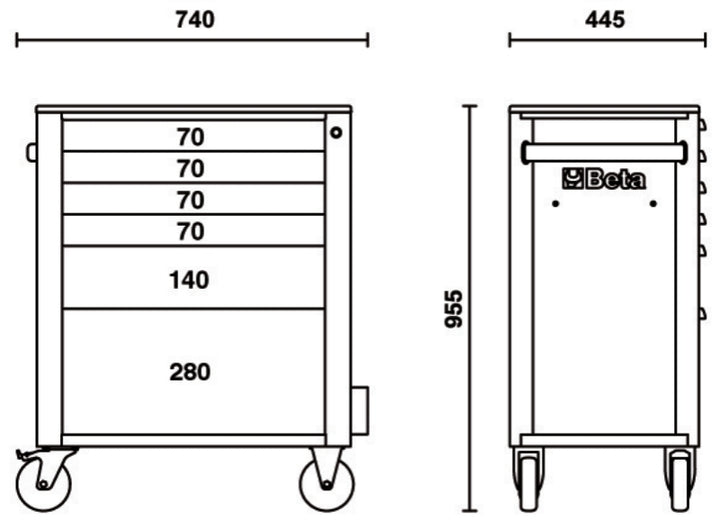 Caractéristiques principales: six tiroirs (588x367 mm) avec des ralentissements de roulements à billes: 4 tiroirs, tiroir de 70 mm High1, tiroir de 140 mm High1, 280 mm Bases de tireurs élevé Support.740x445x956mm