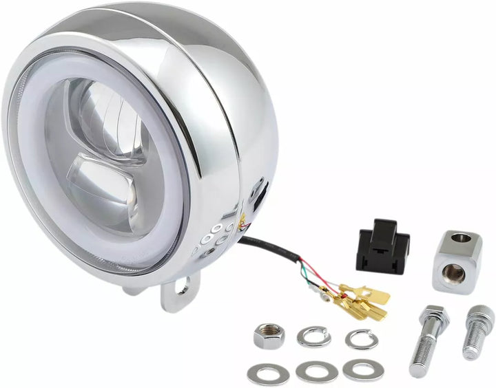Phare LED avec boîtier en métal serré, position en ligne et parking (œil ange), lumière de route et fail