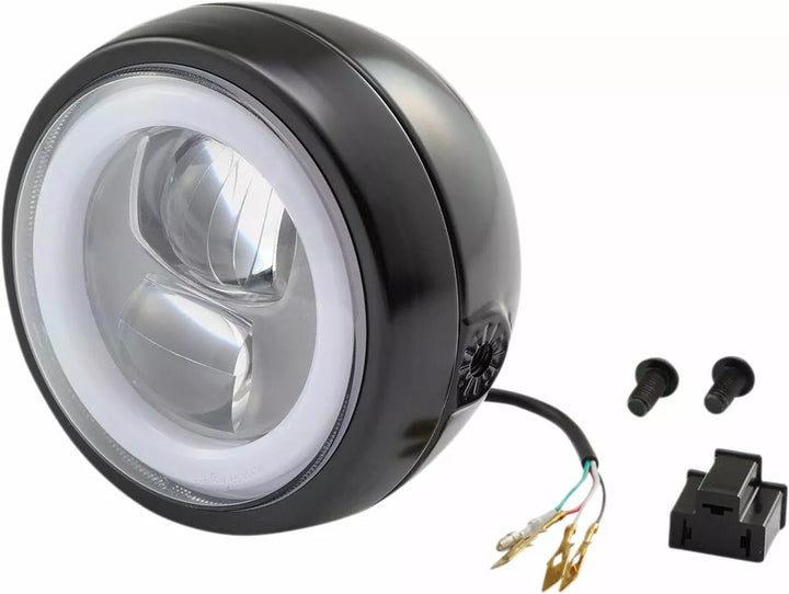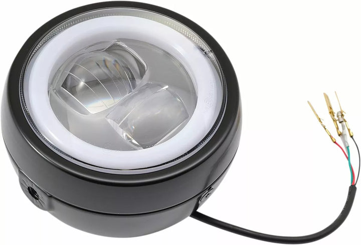 Phare LED avec boîtier en métal serré, position en ligne et parking (œil ange), lumière de route et fail