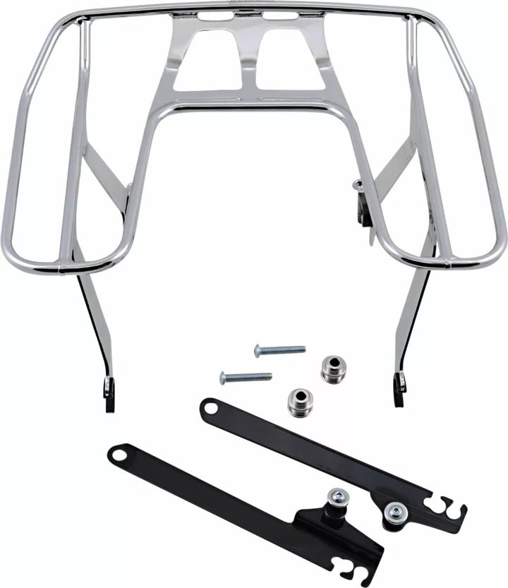 Le haut du rack est à peu près au niveau du haut du siège et chaque rack a un coup de pied à l'arrière, il y a des endroits pour fixer des cordons élastiques ou des sangles de montage afin que vous n'ayez plus à gratter votre garde-boue à vélo lorsque vous sécurisez votre cargaison, le matériel de montage alta. Kit de montage de Harley-Davidson., Si le siège du marché secondaire n'est pas des sellets ou des processeurs Lucky Daves, alors regardez soigneusement les mesures de l'ouverture pour vous assurer que le rack s'adaptera autour de votre siège de vélo.