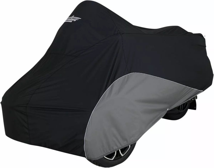 Conception de l'ajustement sur mesure, résistant à l'eau et aux intempéries, stabilisé UV pour minimiser la décoloration des couleurs, la construction en polyester à revêtement en polyuréthane légère, le bouclier thermique protège contre les tuyaux d'échappement chauds et les désacles application immédiate de la couverture, de l'extension dans l'économie