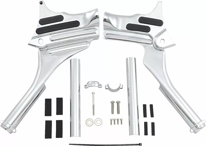 Ajoutez de l'éclat à une zone terne avec ces installateurs lisses et rapidement qui enveloppent le cou et s'étendent sur le cadre, le couvercle est suffisamment élargi sur le côté droit pour accueillir l'interrupteur de traction de régulateur de vitesse en ligne trouvé sur la couverture des modèles de remorquage routier presque tout au long des supports de plancher, facile à installer sur la route