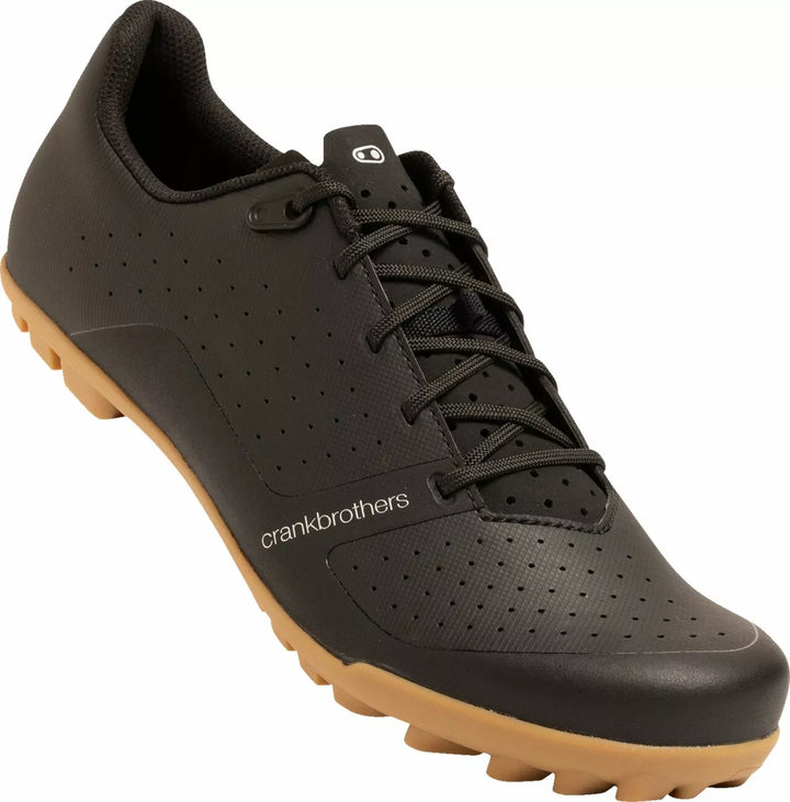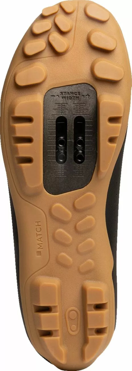 Sole-semelle extérieure, composé de caoutchouc MC1 à mi-friction durable, permet une entrée et une sortie de pédale, une semelle extérieure et un traitement à traction complète complète pour la traction hors du vélo, le profil directionnel pour maintenir votre canal central stride, rigide et à pédale interrompu et la boue de boue, le case de la position de la caisse optime Pour la protection de la bosse, supérieur, conçu pour l'aventure et la conduite à longue distance, une protection robuste des orteils TPU et un compteur de talon, des perforations pour la respirabilité, un film PU pour une résistance à l'abrasion et un nettoyage facile, une boucle de rétention de choc amortisseur d'amortisseur EVA INSOL pour garder les choses en échec, ajusté pour le confort toute la journée, trace à ciel suggérée: Pédales doubles noires. Aucun: Eggbeater, la plupart des pédales SPD., Avertissement: crampons de crankbrothers non installés.
