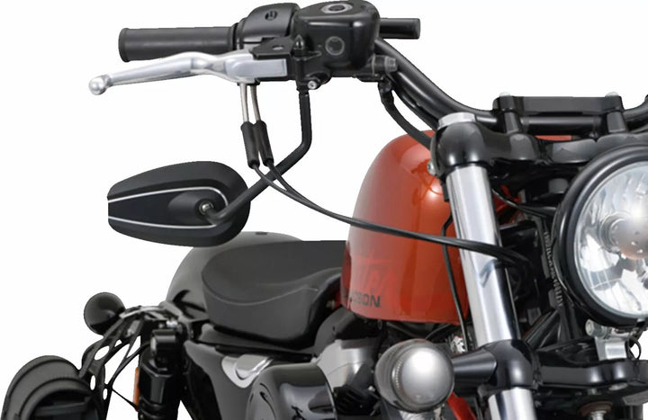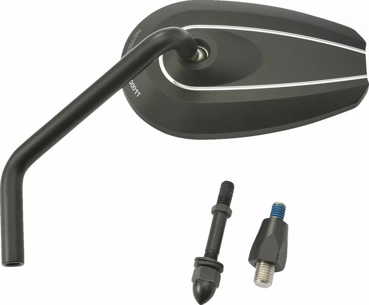 Marquet électronique, tête de miroir du matériau: aluminium avec surface CNC, adaptateur M10 X P1.25 (filetage R / H) et Harley inclus, bras miroir du matériau: acier / aluminium, CNC Aluminium Corps