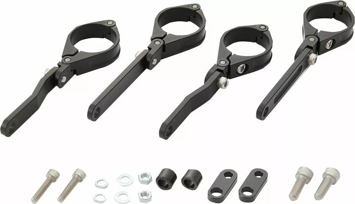 Support de phare à double axe réglable en aluminium usiné CNC en noir, la pince de fourche peut être ajustée verticalement, permettant à la position du phare d'être ajusté dans le kit de montage de l'indicateur Dire M8 de Dire M8 est inclus pour une installation discrète discrète