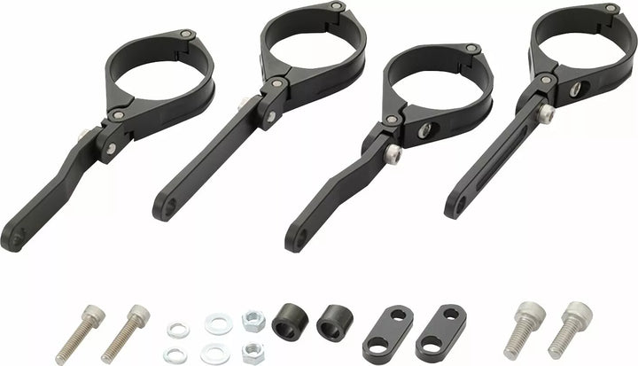 Support de phare à double axe réglable en aluminium usiné CNC en noir, la pince de fourche peut être ajustée verticalement, permettant à la position du phare d'être ajusté dans le kit de montage de l'indicateur Dire M8 de Dire M8 est inclus pour une installation discrète discrète