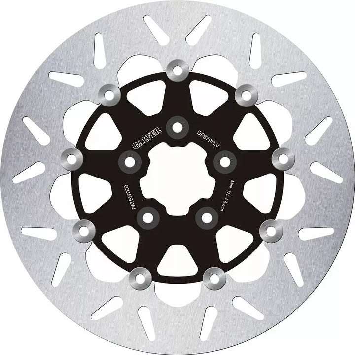 Poids inférieur des masses non suspendues., Plus de puissance de freinage., Une meilleure dissipation de chaleur., Excellente résistance à la corrosion., Moins de tendance à se déformer, maintient le nettoyage de la surface de contact, améliore et personnalisez l'esthétique de la moto (7075 T6 ヨ 6082 T6) ou en acier inoxydable (AISI 420).