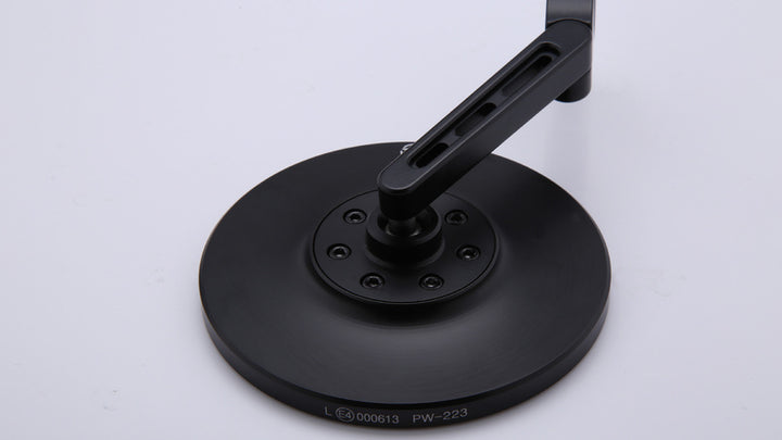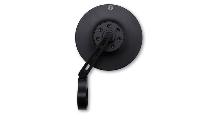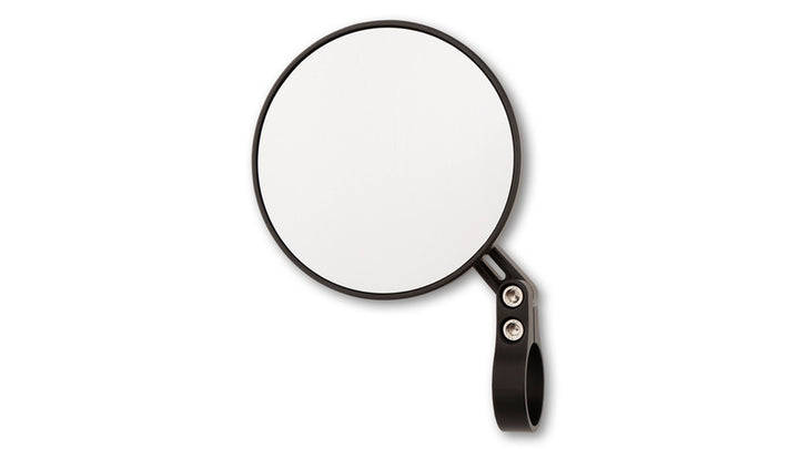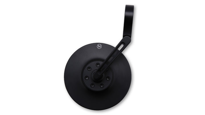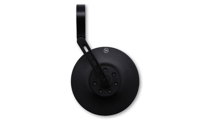 Le miroir est traité CNC et a une tête arrondie en aluminium anodisé mat noir. Le bras miroir est équipé de trois fentes aériennes élégantes et une charnière sur la pince offre des possibilités de réglage supplémentaires pour assurer une visibilité optimale.